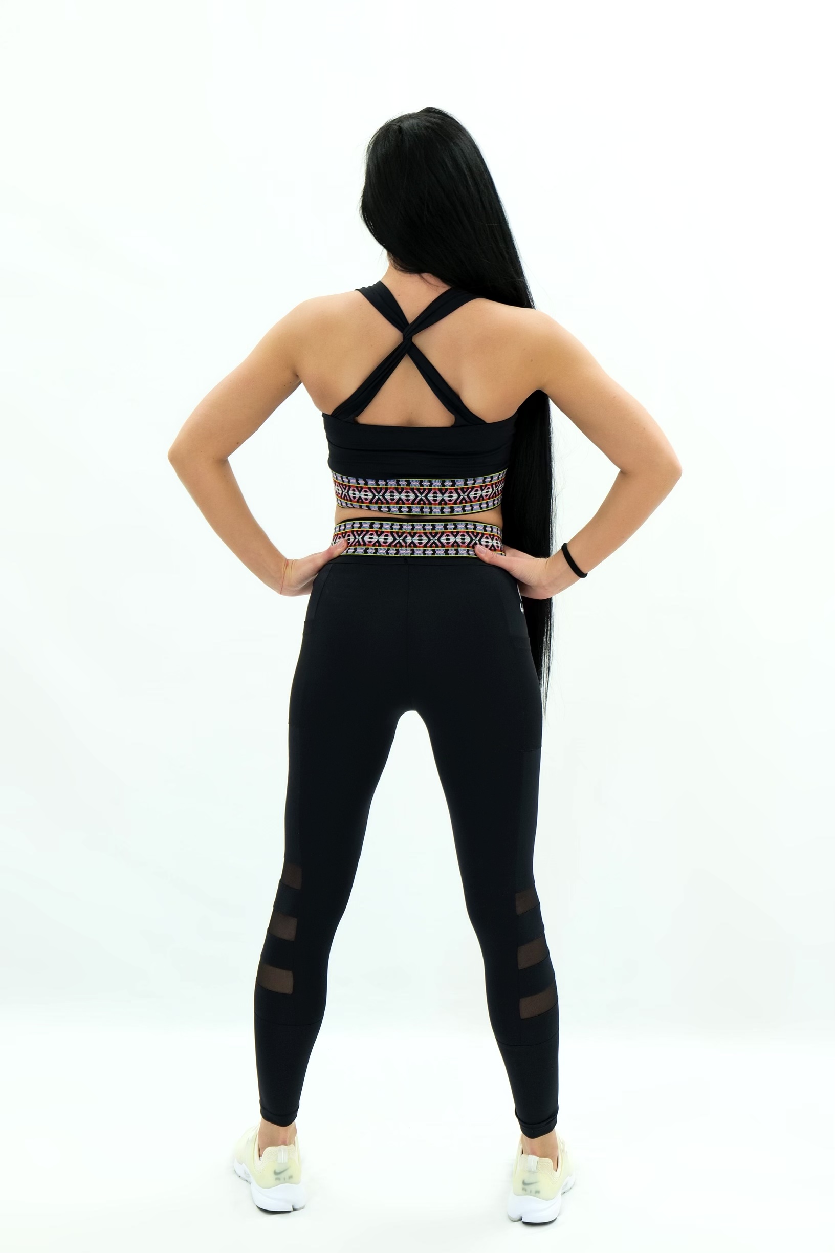 Különleges mintázatú fitness szett. A leggingsben található egy rejtett zseb, ahol a mobilod is jól elfér.